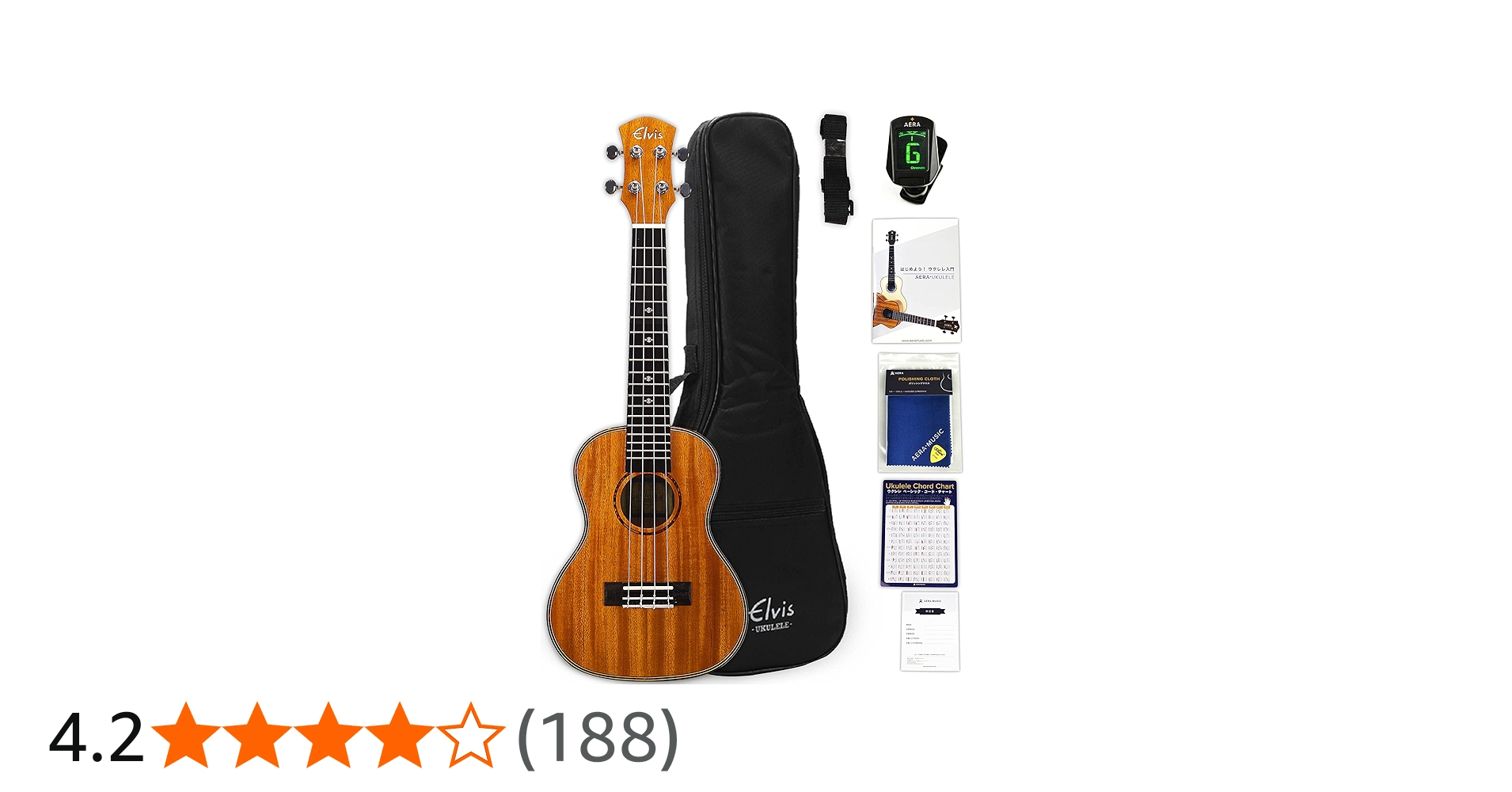 ELVISはエントリーモデルから中級者向けまでをカバーする価格帯で知られるウクレレブランドで、入門セットや単品が手頃な価格で流通しています。